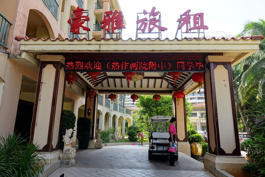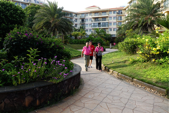 聚会地点选在文昌豪雅白金海岸度假酒店。这是一间毗邻大海的度假酒店,正如它的名字,步行不到十分钟就可以来到海边,白色的沙滩卷着浪花,海风习习海浪轻摇。度假村内芳香的花草簇拥着蓝色的泳池,宽敞的住房,优美的环境,令同学们流连忘返。