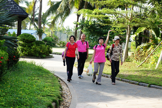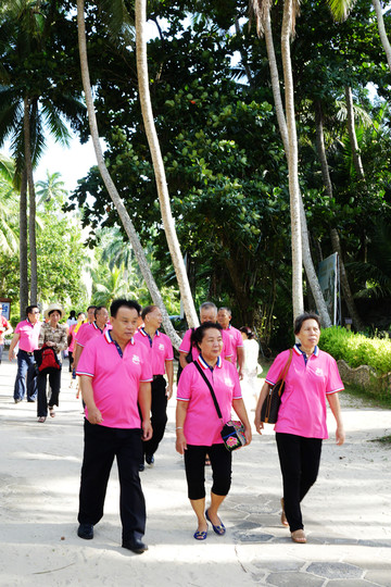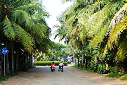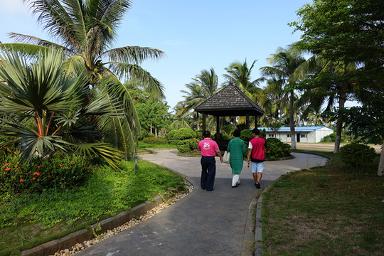 晚餐前,同学们一起漫步走去海边。道路两侧婆娑的椰树在晚风中摇曳,大家说笑着走在椰林大道上,这就是我们热爱的留恋的海南岛,那幅画面永远留在我的镜头里!