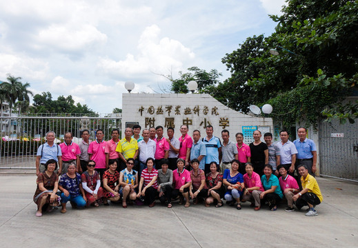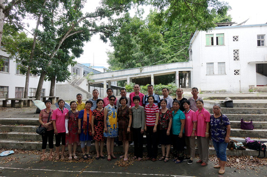 午餐后我们回到了两院附中,这座我们曾经的殿堂,我们的小学、初中、高中就读的学校。记忆中过去不设围墙的校园和校园外的橡胶林,已被围栏和林立的楼房所代替,校园大门上“中国热带农业科学院附属中、小学”十几个大字,依稀还保留着那个年代的气息。走进校园内,唯一还能找回记忆的就是那两座由一座天桥连接的教学楼,天桥的一侧是老师的办公楼和图书室,天桥的另一侧是教学楼,楼下一侧是学生集体宿舍。经历了几十年的风风雨雨,尽管有些破旧,但仍然保持完整。记得当年我们是多么喜欢在这座天桥上奔来跑去。当年的两院附中附小就是我们最高的文化殿堂,老师就是我们的启蒙老师,他们来自于全国各地高等学府或师范院校。虽然文化大革命使教学受到了冲击,但在这里,我们仍然接受了比其它地方更多的更高水准的教育。一日为师终身为师,我们永远会记得每一位老师的恩情。