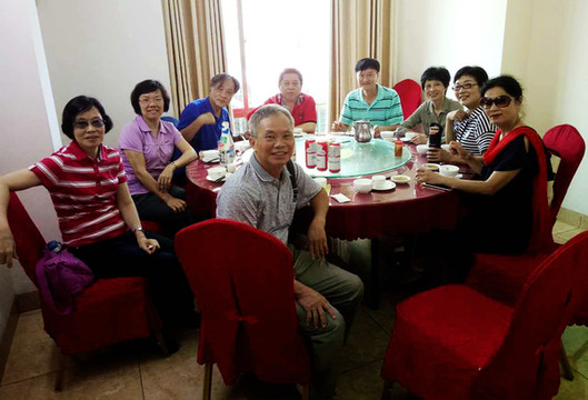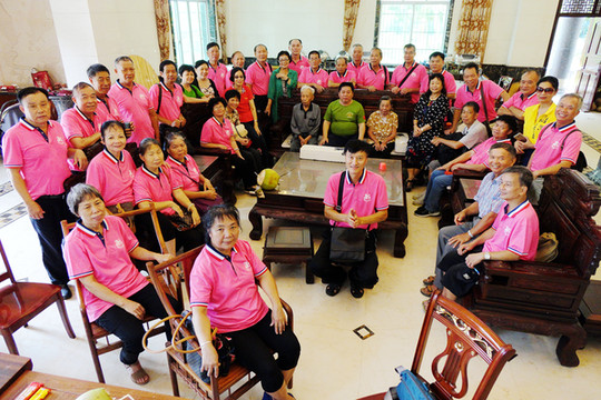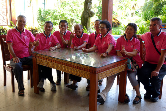 范同学90多岁高寿的父母亲早早就在大门迎接我们的到来,二老思维敏捷身体硬朗,令人高兴和羡慕。同是文昌人的林欣欣同学用海南话自我介绍了自己的父亲,并介绍了我的父亲,没想到老妈妈接着欣欣的话就说“老杜啊,老杜!”,令我惊讶不已,难道她真的还记得几十年前就早已离开两院我的父亲?她的记忆力真是太好了!王苏丽同学告诉我,是范同学的父亲当年向她父亲推荐了烧木槺的方法,并迅速在两院传播开来,让多少两院子女减少了多少上山打柴的痛苦!是啊,我们这代人的记忆中都不会抹去曾经上山砍柴拾柴的经历。