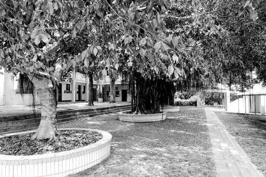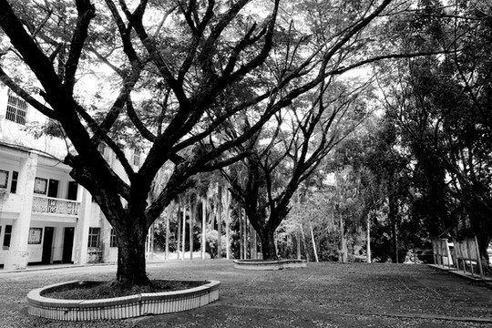 位于铺仔的两院大门依旧端庄地矗立在那里,默默记载两院曾经的历史。门前是省道和一排排的村民住宅。大门上方的字已经开始剥落,没有人维修。因为这里已经不在是原来的两院,它的主人已经更换,“中国热带农业科学院华南热带农业大学”这个名字也许用不了多久就会退出历史舞台,拍完这张照片心里不由得一阵悲哀。也许,这是我们最后一次回到两院!