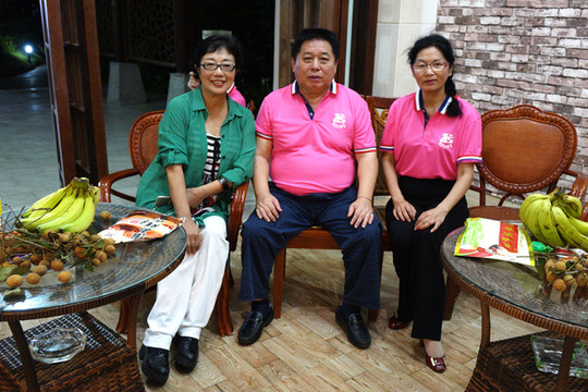 我们上到顶楼西面,远远地眺望文昌卫星发射基地,我猜想这里也许是一个观看卫星发射的好地方!当同学们全部到齐时,我们在范同学家里和他高寿的父母亲合了一张影,我想他们就是我们的榜样,我们一定好好的生活,争取下个五年后在此再相聚!