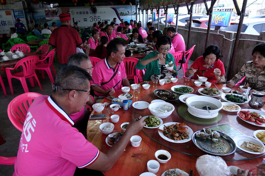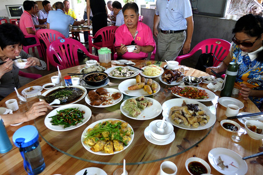 晚餐在13公里外的昌辉鸡饭店,筹备小组为大家特意安排品尝正宗的文昌鸡,来文昌当然要吃文昌鸡!聚会的美食从这一刻开始!