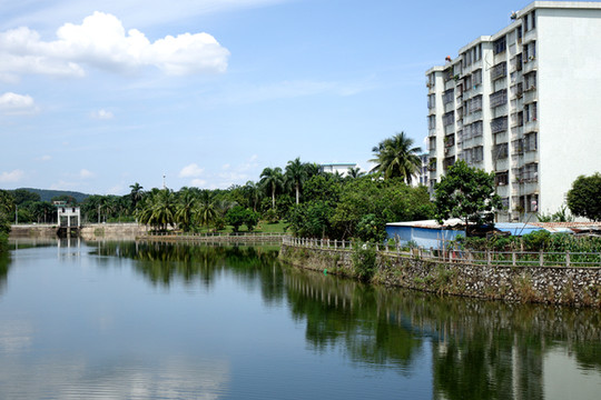 我们选择了穿过愚公桥、经过位于铺仔两院大门的路线离开两院。这是一段凝聚了许多记忆的路!当年我们去那大、去八一农场、去我曾下乡的连队——五队,回院部看电影,都要走这条路。当年这是一条坑坑洼洼的砂石路。过了愚公桥,就是一个大陡坡,出两院爬坡,回两院下坡,曾经多次往返在这条路上,在上面行走过、骑过自行车、坐过牛车、坐过卡车,有白天也有黑夜,特别是夜晚看完电影后一群年轻人说说笑笑从院部走回五队,那情景依然历历在目。