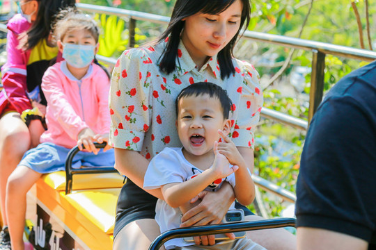看着小火车上小朋友们欢快的笑脸