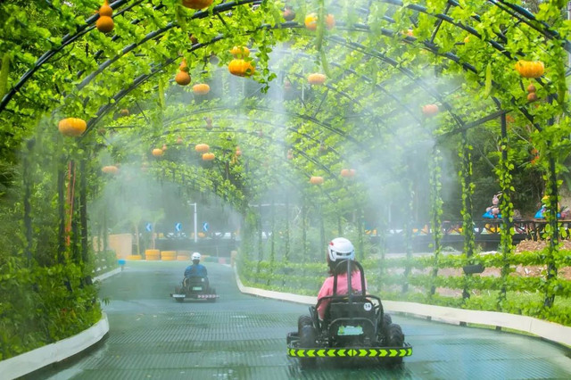 体验了田野卡丁车、水陆越野车项目。这两个体验项目拥有完善的赛道设施,包括丰富的主题场景和服务保障。眼前既有田园风光,亦有野性十足的挑战趣味,在速度与激情的碰撞中,感受到清凉一“夏”的畅快。