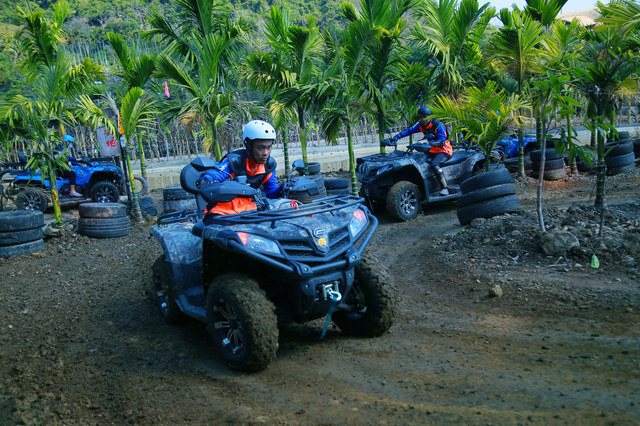 槟榔谷水陆越野车,分为“挑战道”、“探险道”两个赛道,分别是纯人工障碍赛道和部分天然屏障障碍,人工障碍惊险刺激,各类路障新奇有趣,全程无尿点,“环环相扣”颠簸流离,丝毫不敢放松;“飞跃驼峰”体验平底起飞,感受最刺激的山地越野车!
