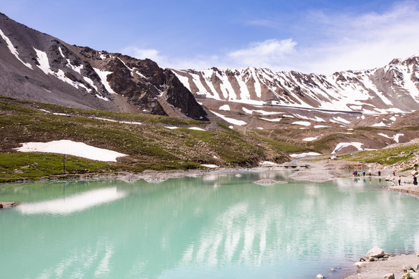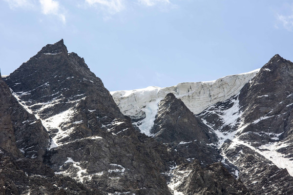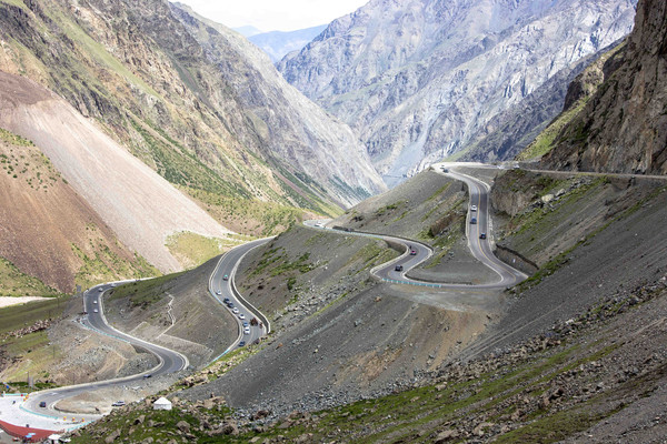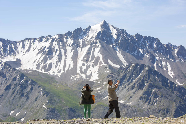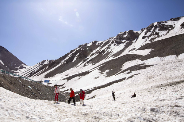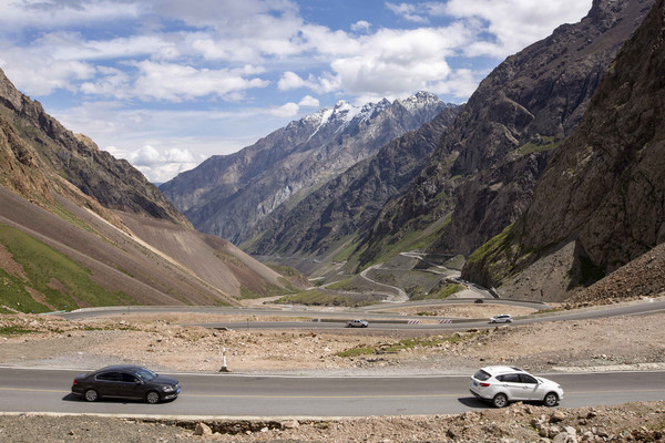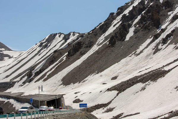 天山,呈东西走向,绵延中国新疆境内1700千米,占地57万多平方千米,占新疆全区面积约1/3。中国境内的天山山脉把新疆大致分成两部分:南边是塔里木盆地,北边是准噶尔盆地,与喀喇昆仑山、阿尔泰山行程独特的“三山夹两盆”地形。