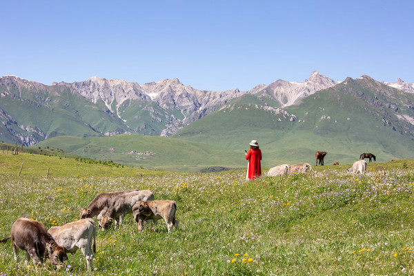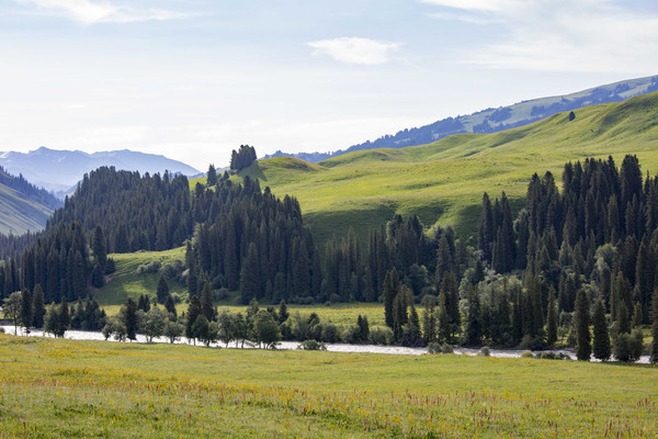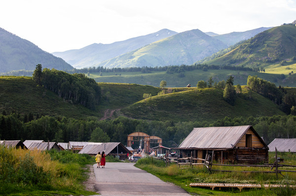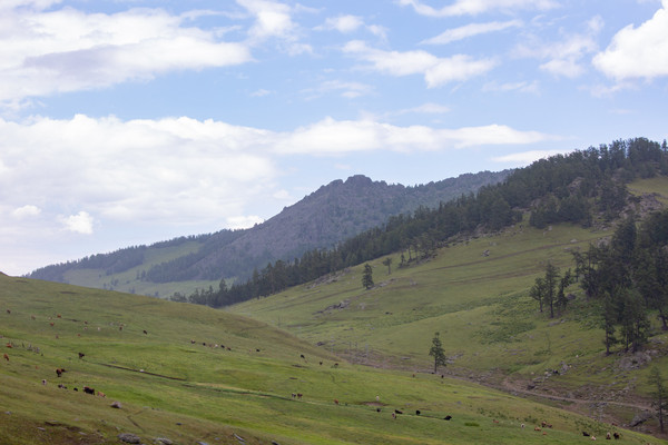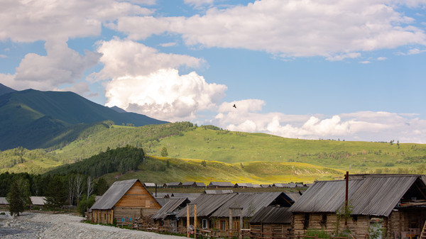 那一栋栋的小木屋和成群结队的牧群,与森林、草地、蓝天白云构成了独特的自然与文化景观