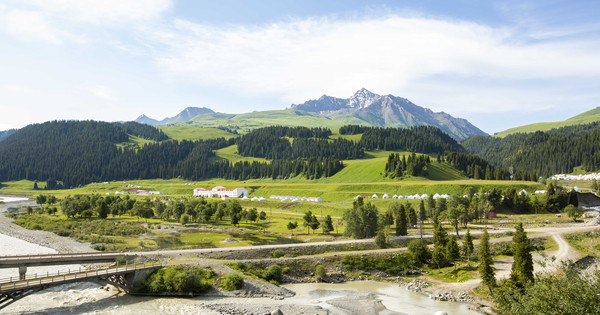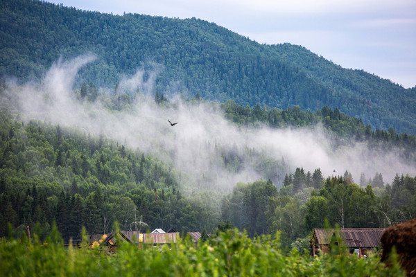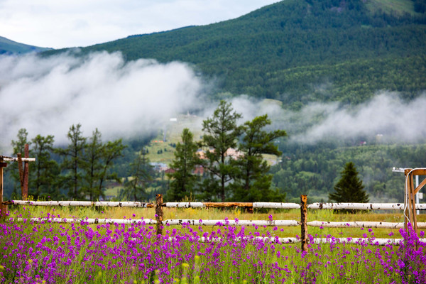 自然、原始的山野风光,风景独美,禾木河自东北向西南流淌,原始落村与大草原和谐自然的融为一体。