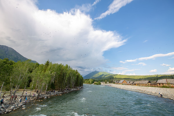 经哈巴河一路西进,一条秀美的河流时不时在路边盘旋。