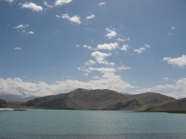 开到中途是可以看到卡拉库路湖(3700米)和“冰山之父”——慕士塔格峰,像一个大大