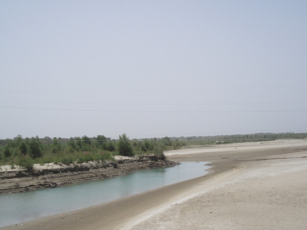 什么东西可看,可以下车拍照。从胡杨林出来,我们经过只有一点点水的塔里木河,两侧