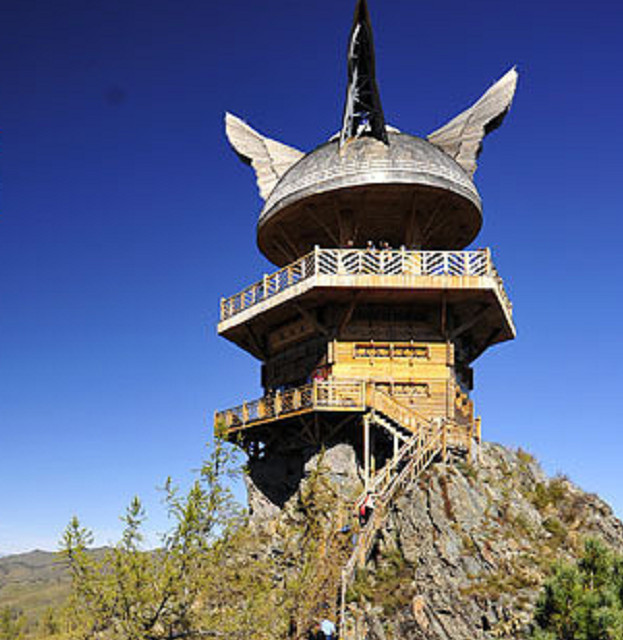 爬了1068阶台阶之后,终于到达了观鱼亭。观鱼亭位于海拔2030米的哈拉开特(蒙古语意为骆驼峰)山顶上,与湖面的垂直落差达600多米,因处于观察“湖怪”的最佳位置,故得名观鱼亭。登上观鱼亭可观看喀纳斯湖的整体美景:其一可鸟瞰喀纳斯湖,四分之三的湖面尽收眼底。湖面呈绸缎般光滑平静,宛如一块色彩斑驳的翡翠镶嵌在山谷之间,并向下游河谷蜿蜒流淌,波光闪耀,飘散着童话般的色彩。顺河水之势望去依稀可见神仙湾、卧龙湾等河曲,草色木色水色在逆光下不断变幻,充满了鲜活的灵性,体现出细腻、幽雅的南国秀色般的美丽;其二可观览湖周层峦叠嶂、翠峰倒影、云起波涛的秀丽山色;其三举目北望,从南向北蜿蜒而上的喀纳斯湖水被群山阻挡,山峦之中可清楚地看到阿尔泰山的最高峰——友谊峰(4374米),山顶雄伟壮丽的冰雪世界,犹如一块光洁晶莹的白玉,耸立于群峰之巅。而 “U” 谷、古冰斗、冰碛垄等古冰川地貌遗迹,分布在喀纳斯湖两侧的高山和河谷内,证明湖区曾有过多期冰川活动。