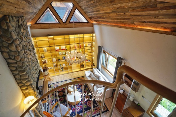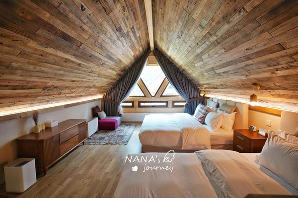 民宿都是复式设计,一个旋转型的楼梯连接两层,楼下一间房,楼上是阁楼拥有两张床,特别适合一家老小来这里度假游玩,当然如果是闺蜜组也特别有感觉,晚上可以来个桌游!