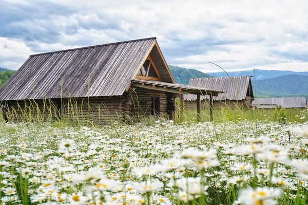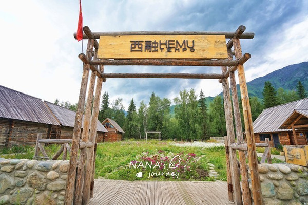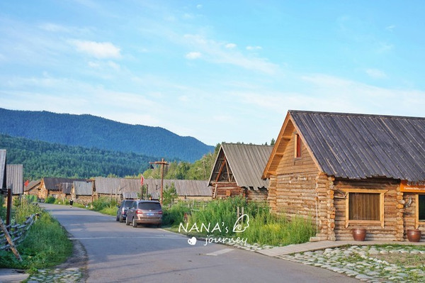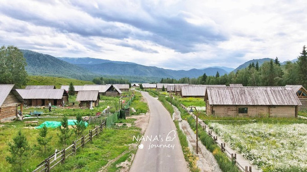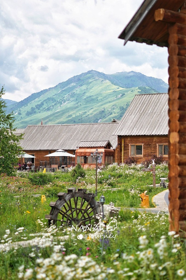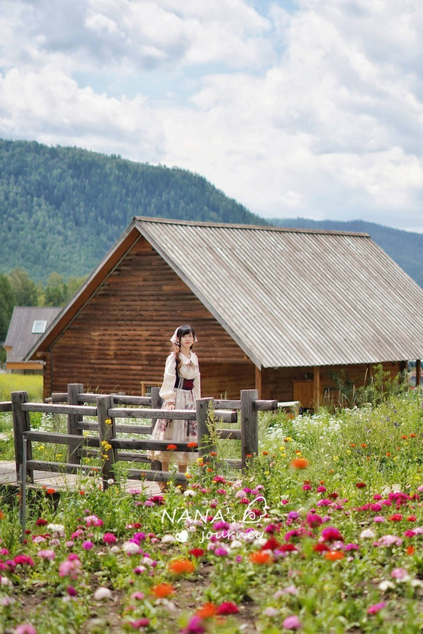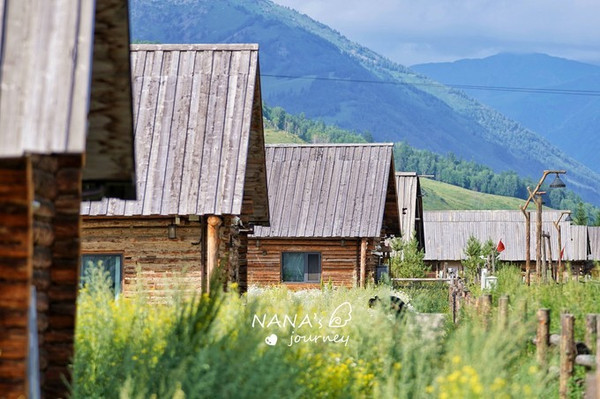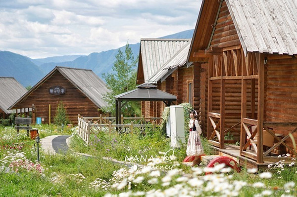 如果说最让我有拍照冲动的,那必须是禾木换乘中心处的这些新宅了。不得不说,这些山庄把禾木风情还原的,都快成网红拍摄点了,第一天看到满是花海的景色,就让我心动不已。
