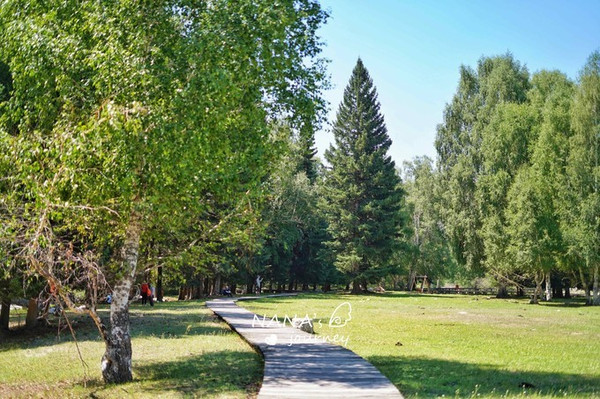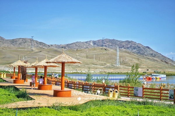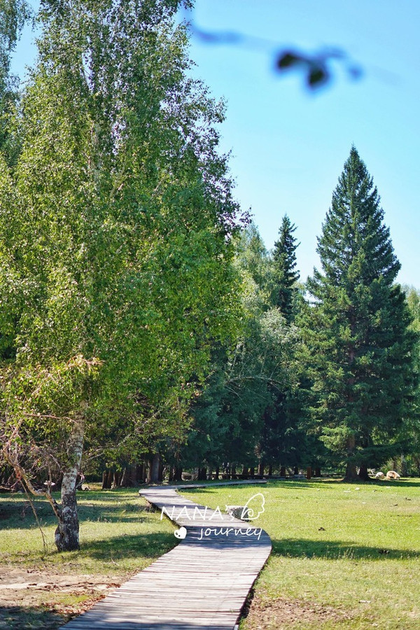 景区不算很大,加上北疆日照丰富,沿湖的步行道还有一些遮阳的小草棚,可以边看风景,边坐在湖边享受一下湖景的美。