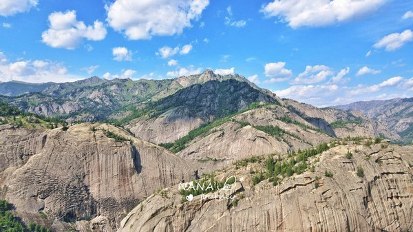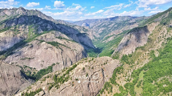 由于徒步时长实在太久,我们纷纷放弃了挑战,退回原点,开始航拍,看看峡谷之上的美景。和之前获得的信息相同,上方的山体都是光滑的山体表面,和神钟山形成原理相同,而生存的植被也多为极寒之地的耐寒树种啦~