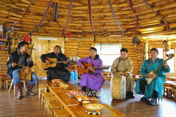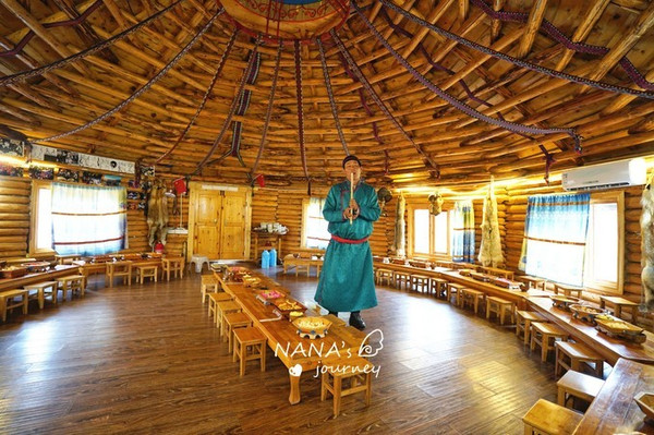 对于重要的宾客,歌舞表演和宴请是最好的招待方式。而宴请便是在这样的圆形尖顶小木屋中。大家围坐在圆形的小木桌,看一场图瓦人的表演。