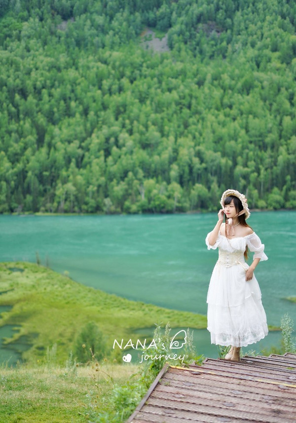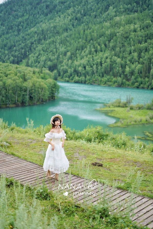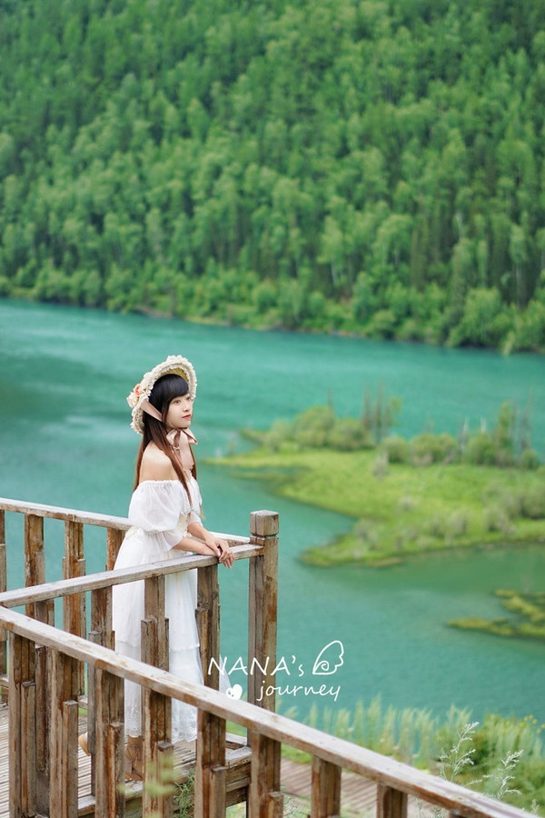 第一站卧龙湾,与其说湾,不如说中间的滩涂如同一条龙的形状,如果有航拍还能看出来挺像!之前都没好好拍过人像的我,自然不能放弃这个机会,通过观景台的落差,获得了不少背景是碧绿喀纳斯河的美景。
