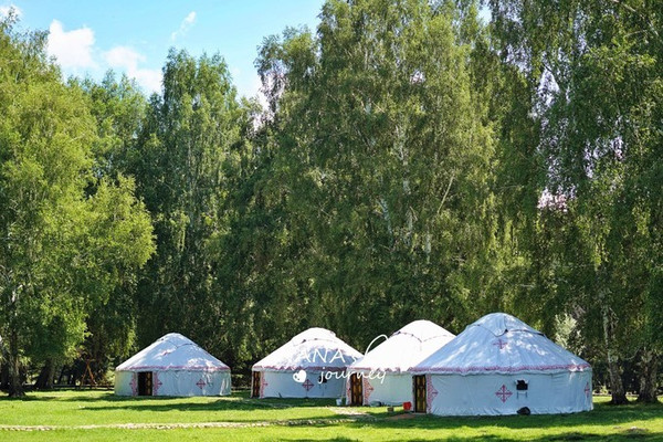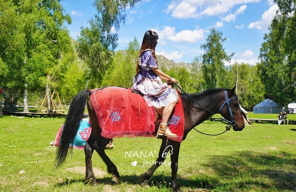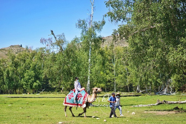门口的区域是最热闹的体验区,骑马、骑骆驼都是体验当地牧民生活方式的项目,来都来了,那就一定要体验一下啦~而且骑马骑骆驼一般由当地人拉着,在白桦林里晃悠一圈,不得不说,真的有种牧民出行的感觉,美景给这个体验都加分不少了呢~