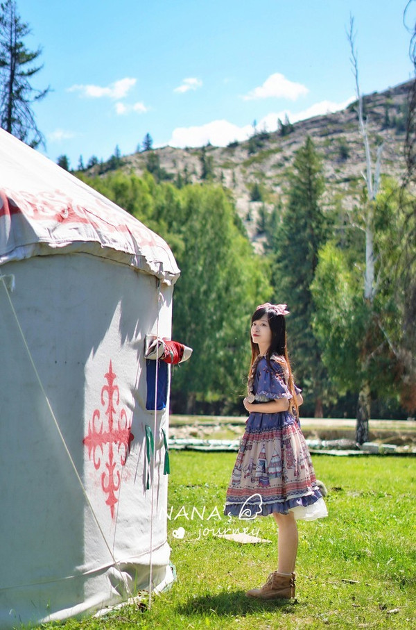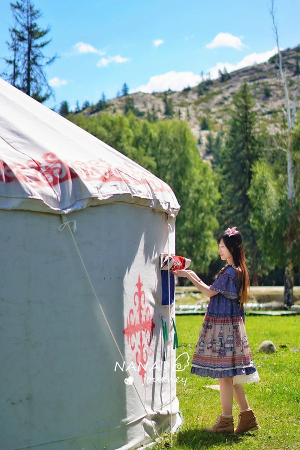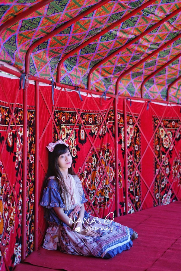 舞台不远处是真正的牧民毡房,虽然没进入参观但也在外围和可爱的白色毡房来了个合影,想着如果夏天来这里住上几日,应该也是美妙的田园生活呀~