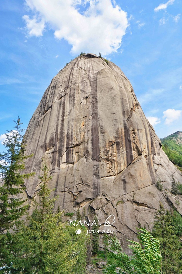 神钟山,又名阿米尔萨拉峰,拔地而起,形如巨钟而得名,是阿尔泰山之最,也是可可托海的标志性景点。可见表面非常光滑,竖型条纹,都是严寒风化所形成,很是神奇。