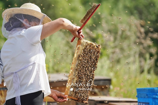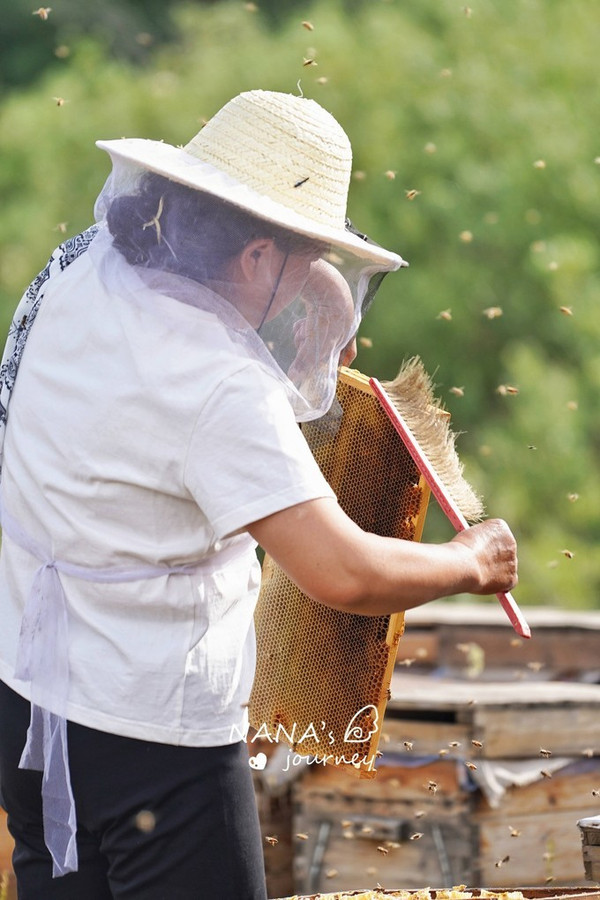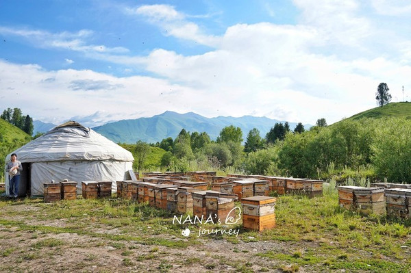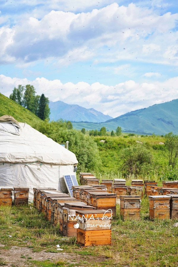 看完演出后余音袅袅,我们打算带着这份回味,深入白桦林感受下牧羊人和养蜂女爱情发生地的美好,走在步行道上,两边高大的白桦林,偶有蜂箱置于树底,会不会是养蜂女留下的?