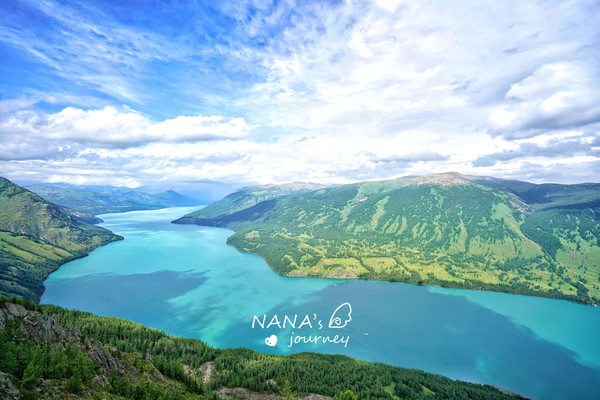 说来这天真的不想让我们遗憾,不过半个小时,天就放晴了一大半,我立马拿起相机就出发。其实我也不是没拍过喀纳斯湖的全景,来的两次都是爆好的天气,但夏天的喀纳斯湖的确没有拍过,先走一段拍一些照片吧~