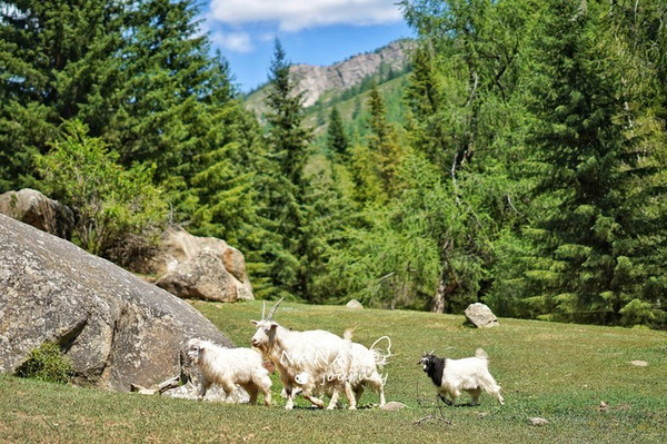 迎着朝阳,走过茂盛的山坡,与禾木相伴的温馨时光,被小伙伴抓拍了下来~