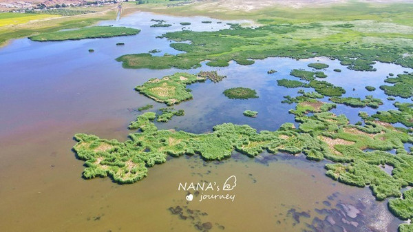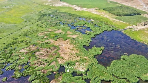 再从航拍的视角来看看可可苏里的美,如果能再深入湿地会有更不一样的发现吧~