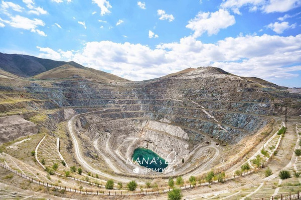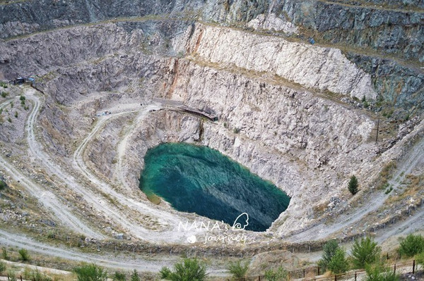 走近矿坑,在观景台,我们能看到矿底的池子,呈现海蓝宝原石的色彩,充满着神秘!