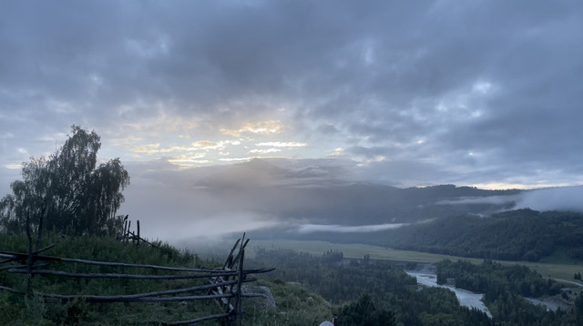 今儿进再一路向北来到了阿勒泰,都说喀那斯说神的自留地,果不其然,当车子驶入盘山,大家就吵着想下车去打卡拍照,云雾缭绕间竟然有几分感觉了。