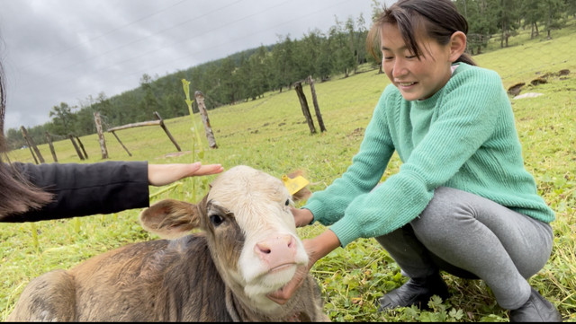 最有特色的还是草原上游牧民族,趁着20分钟的休息空档一路小跑,想来场家访,于是我就碰到了第一个朋友:卡恩,看起来就七八岁的小女孩话说的很溜,还邀请我一起给她的羊羊喂草,几句的闲聊也让我对此有了新的认识。