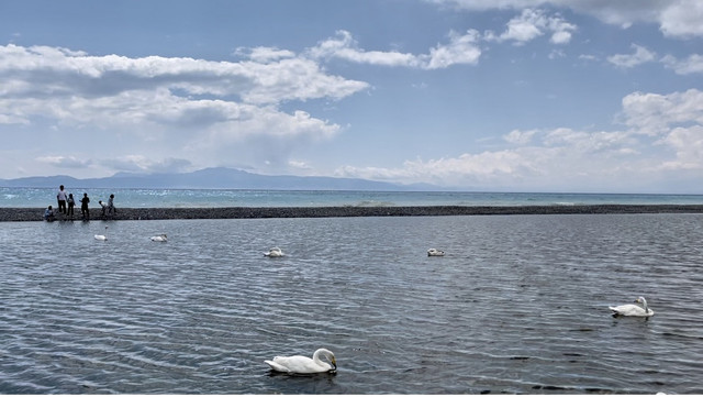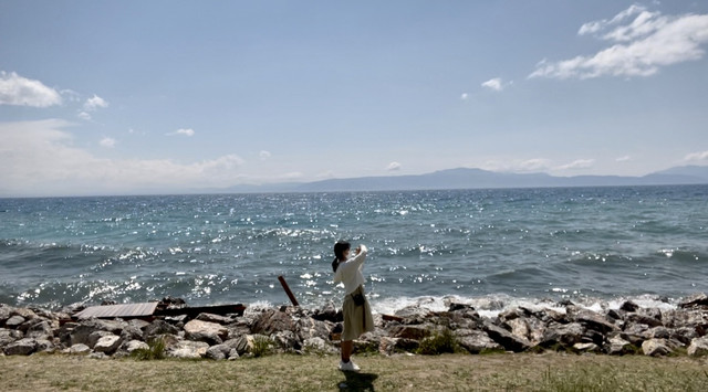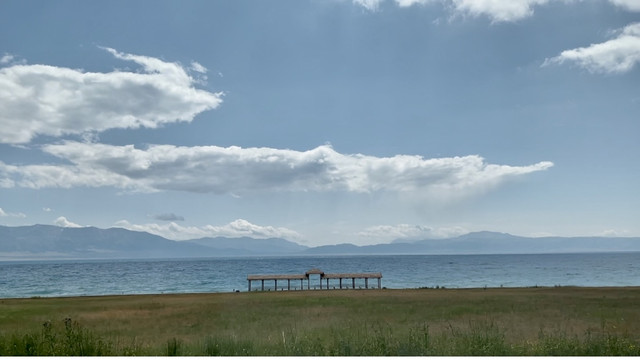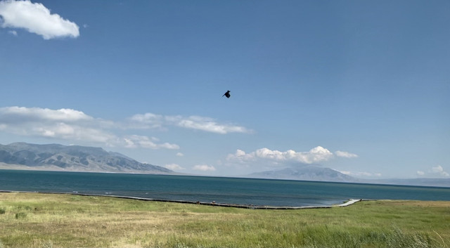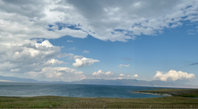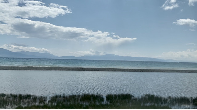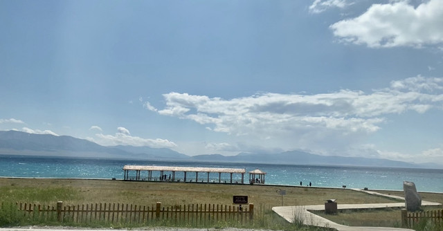 之后就是环湖之旅,不得不说赛里木湖的最佳游玩方式啊就是公路环湖,因为你下去的时候风是呼呼的吹,而车窗外的风景则是每一帧都不想错过,你从来没有想过有那一片深蓝能这么的让人心动。