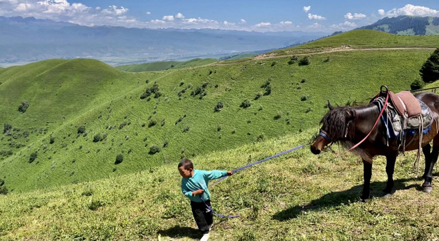 既然去不了内蒙,那就来伊犁吧,都说伊犁的夏天是最美的,因为它有无数的草原,而那拉提草原的特色那就是最原生态的哈萨克民族生活着,这次得跟着景区大巴向内,草原里大片的牛羊成群,还有四五岁的小孩牵着他们心爱的马儿,喜欢第二站的蒙古包,盘腿入内哈上一碗奶茶,再来过糖糕,欣喜间主人家的小孩却笑着说已经吃腻了。