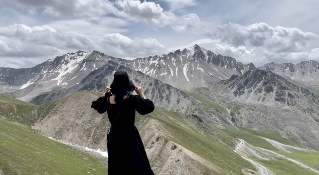 我们从乔尔玛站入内,短短的百公里,我们从草原看到了荒石,再到雪山,原来一日春夏不是梦,而且除了自驾,我看到了无数勇士,骑着哈雷,公路自行车,想到挑战这段公路。于是我遇到了第四位朋友,一位年纪60多的姐姐组团来骑行打卡,也许是过去的2020让大家有了无数的思考,我们面对如此的复杂多面的岁月,该如何留下纪念。