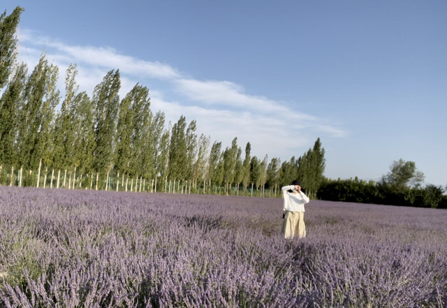 搜罗间发现这儿的深水鱼——鲑鱼,来不及坐下品尝的我只能打包一份鲑鱼饺子过个瘾,也算是一种新打卡方式啦,近百公里的赛里木湖我们也只看了三分之一,随后开过果子沟大桥,来到了伊犁,夏天的伊犁是紫色的,奔跑在大片的薰衣草花田里面,再品尝一个薰衣草味道的冰淇淋,是夏天的气息了。