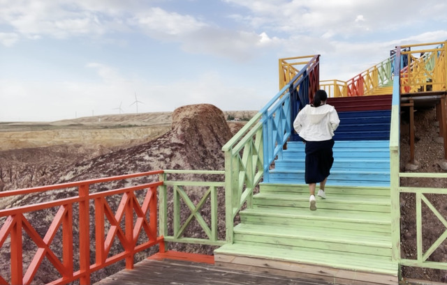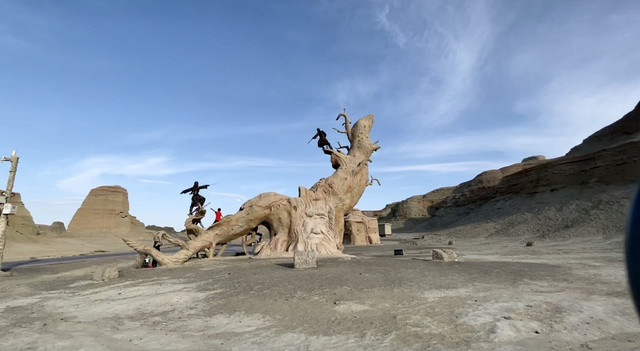 今儿的行程我们还要出发魔鬼城,世界的鬼城,只因为这里的一片荒漠成沙,形成了无数个让人幻想的迹象,不得不说大自然的鬼斧神工,选择租上一套红色维吾尔衣服,乘着小火车一路向内,在广阔间舞动绕圈圈,我就是里面最亮眼的姑娘呀。