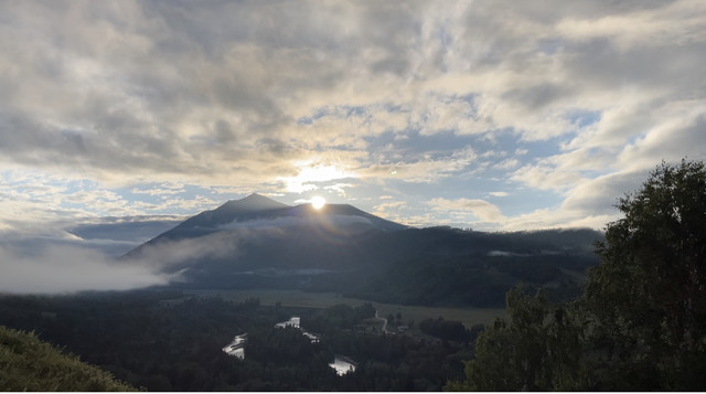 而重点却是在第二天,五点半时,鸡鸣,天已经慢慢开始亮起,一路向上,沿着哈登平台,我们要去看场最美的日出,待到山顶,粉红的朝霞已经晕染,而太阳依旧在努力爬顶,差不多七点时,太阳终于露出了足迹,山口间一片惊呼,而那百间木屋也是炊烟袅袅,村落也开始热闹了起来。