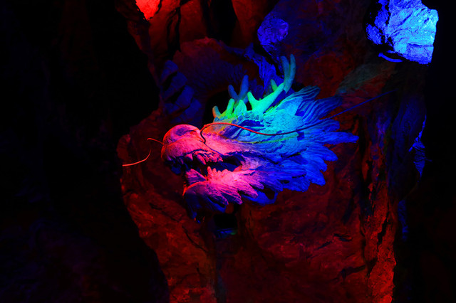 洞内以龙之九子贯穿,结合地质科学,以奇幻、奇妙、奇异、奇丽、奇趣、科学、科普、科幻“五奇三科”的别样内容向游客展现溶洞亿万年的历史。