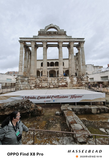 梅里达小城面积不大,我们集中看了戴安娜神庙遗址,罗马桥,圣母大教堂【外观】几个景点。戴安娜神庙位于梅里达市政广场,始建于公元一世纪,是一个长方形建筑,为柱形抅架,其功能主要用于朝拜罗马帝国首领。由于杰出的工艺,狄安娜神庙是梅里达城内幸存的古罗马时期的唯一宗教建筑。现在所谓的神庙仅剩下几根立柱,虽然颓塌,但还保留着当年伟岸的风范。梅里达的罗马遗迹,包括了水道桥、罗马桥、古罗马竞技场、剧场、黛安娜神庙等,宛如一座小型罗马城。
