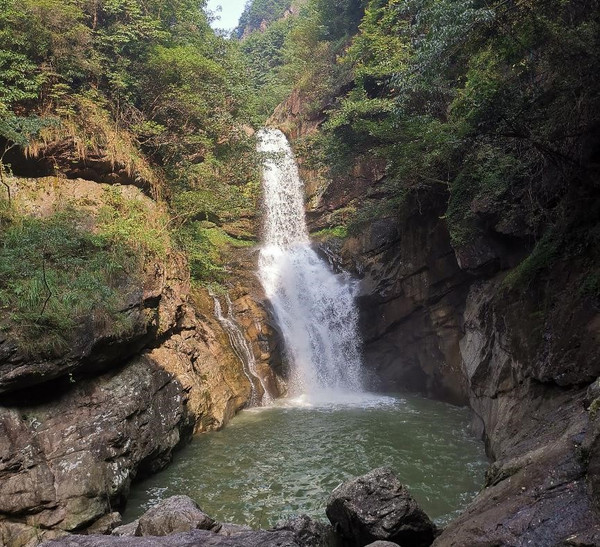 千丈岩瀑布自然形成,崖壁如削,瀑布自崖口至潭底,落差 1 7 1 米,妙高台是蒋介石民国时期下野期间和宋美龄的居住地。
