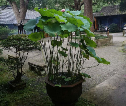 水缸里的荷花长的修长又茂盛