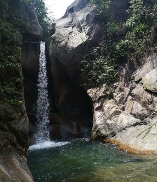 出南京时还是大雨如注,到琼台仙谷却是艳阳高照,气温陡升,幸亏早有准备,防晒衣、防晒霜、太阳伞统统出动了。