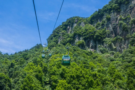 搭乘缆车缓缓上行,慢悠悠的飘荡在满山碧色里,亭下湖如明珠般镶嵌在山中,要多惬意就有多惬意。