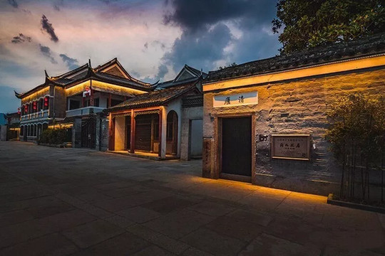 在夜色晕染下的老街恰如一幅淡彩工笔画,恬静悠然。