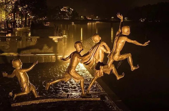 漫步三里长街,孩子们能欣赏到许多赋有溪口文化特色的铜制艺术造型。
