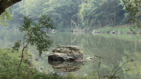 巨石横在河中,应该是山上的原祖民,而后分家,那刀劈之石要经历多少年啊?