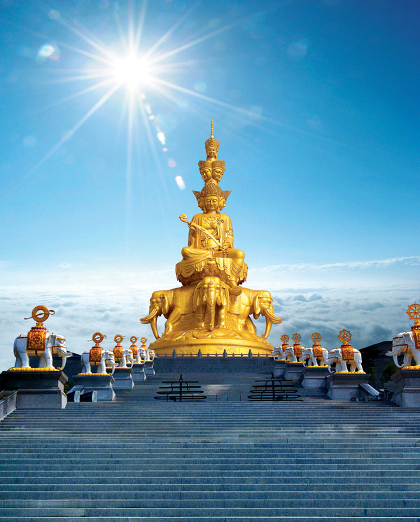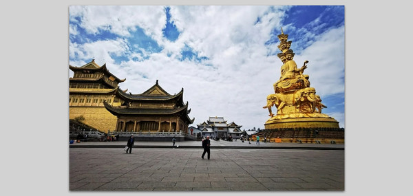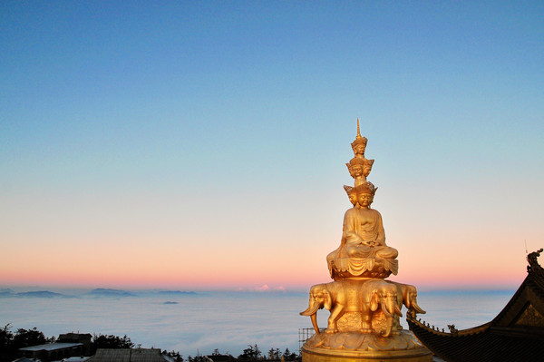 说到峨眉山让我想起了李白的诗“峨眉山月半轮秋,影入平羌江水流。夜发清溪向三峡,思君不见下渝州。”清晨的峨眉山,雾从山谷里升起来,整个树林都浸在乳白色的浓雾里。一片云海出现在眼前,慢慢地太阳出来了,千万缕像利剑一样的金光,穿过树梢,照射在峨眉山上,闪闪发光,美丽极了。峨眉山离成都一小时车程,这次从成都出发前往峨眉山,一直念念不忘的峨眉山终于来了。